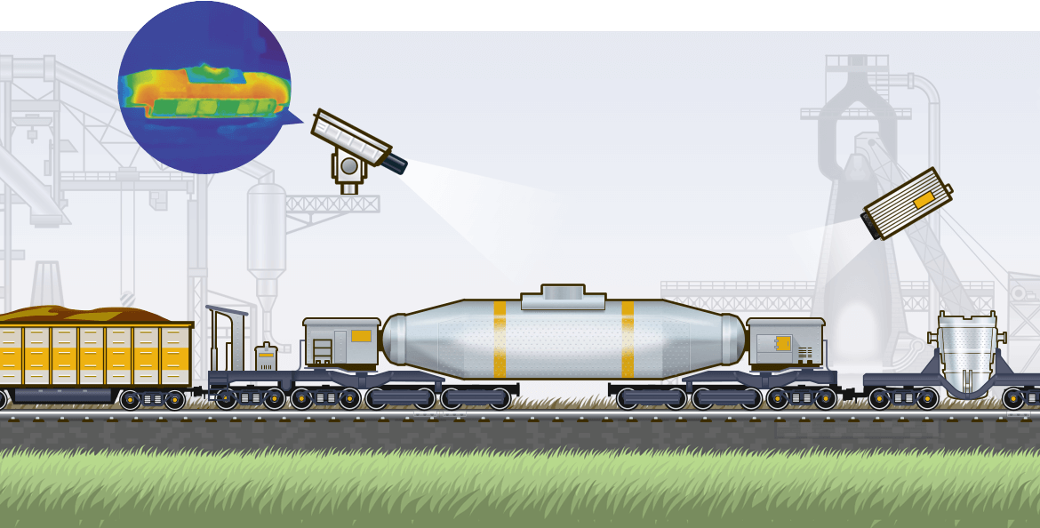 熱成像系統(tǒng)非常適合檢查魚雷罐的狀況,可通過(guò)外殼上的熱點(diǎn)發(fā)現(xiàn)臨界點(diǎn)。到目前為止,偶爾使用手持式熱像儀進(jìn)行的測(cè)量不能保證100%的檢查。相比之下,部署一個(gè)固定熱像儀則能夠使用下游數(shù)據(jù)庫(kù)實(shí)施有效的管理。